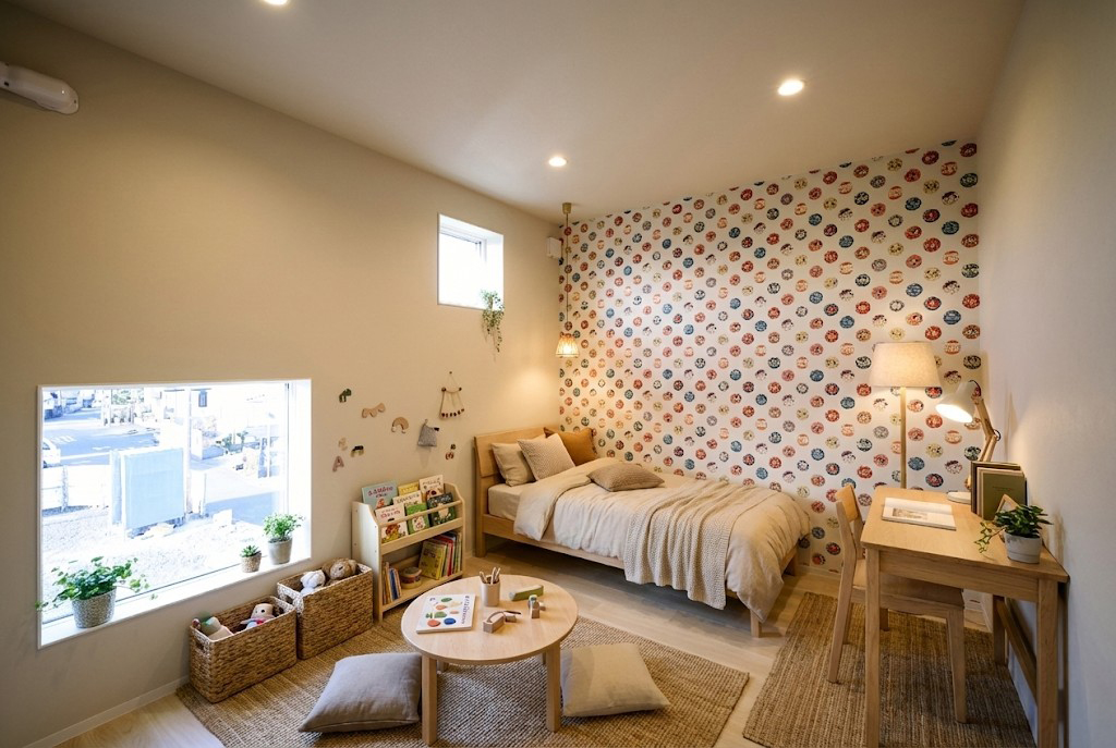 2階には寝室のほか、子ども部屋や書斎として使える2部屋を備え、各室に収納スペースも確保しています。