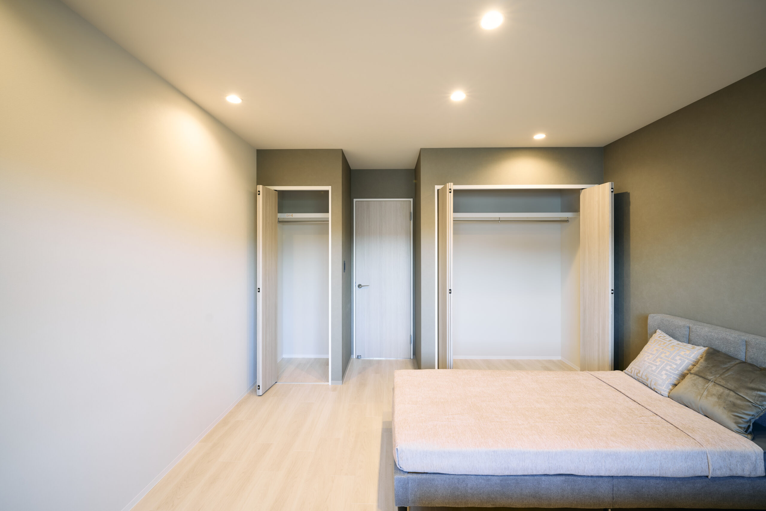 2階には寝室のほか、子ども部屋や書斎として使える2部屋を備え、各室に収納スペースも確保しています。