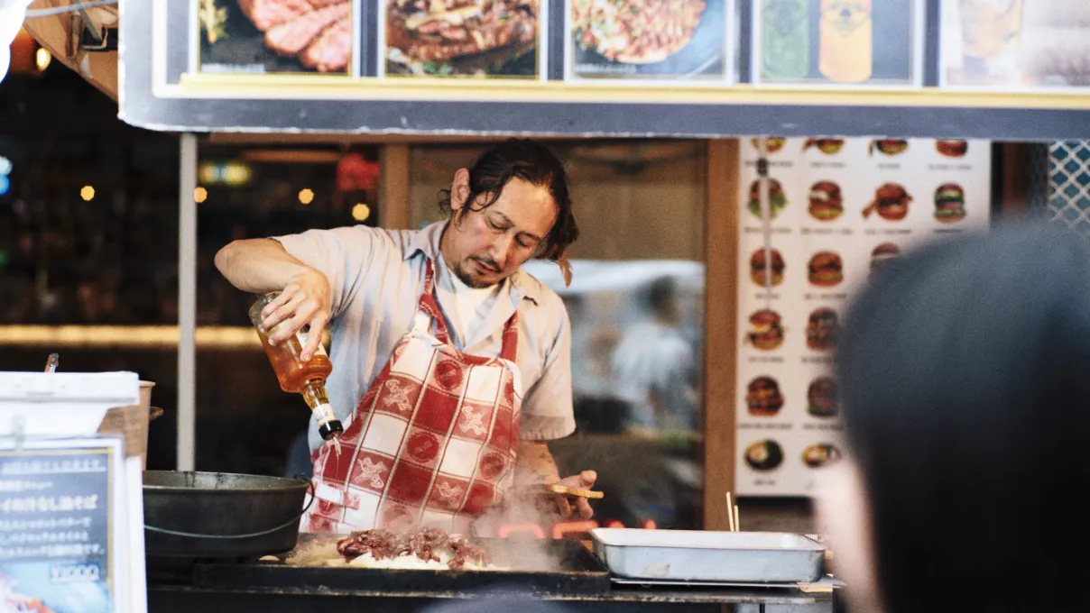 人宿町にお店をかまえる飲食店が、人情祭のためだけにスペシャルメニューを屋台で提供。